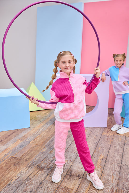Color Block Jogger, Pink & Cranberry Quilted Trellis