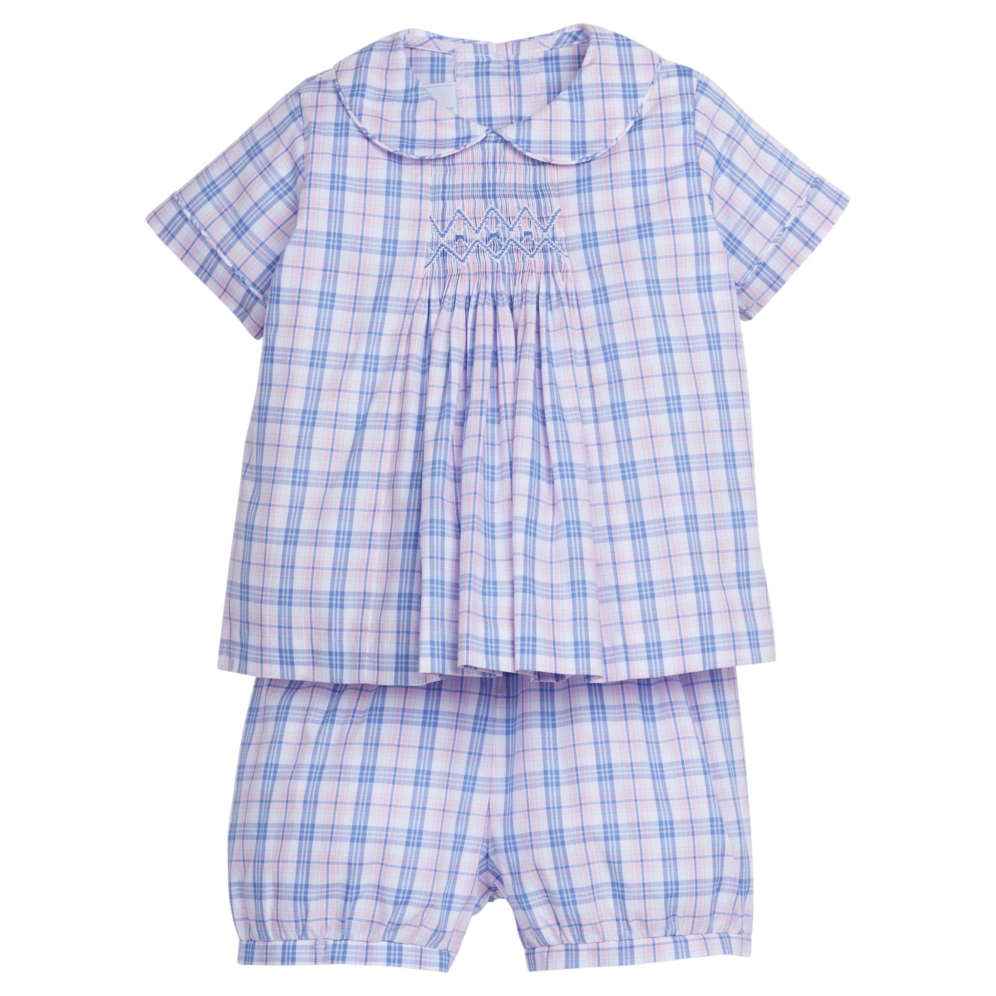 The Albany Plaid Short Set is a charming, classic ensemble designed for timeless style and comfort. Featuring a soft pastel blue and pink plaid, the smocked detailing on the top adds a touch of elegance, while the Peter Pan collar and short sleeves complete the polished look. Paired with matching elastic-waist shorts for easy wear, this set is perfect for special events, family gatherings, or everyday play. Designed with Little English's signature attention to quality, this set ensures both sophistication and ease for your little one.