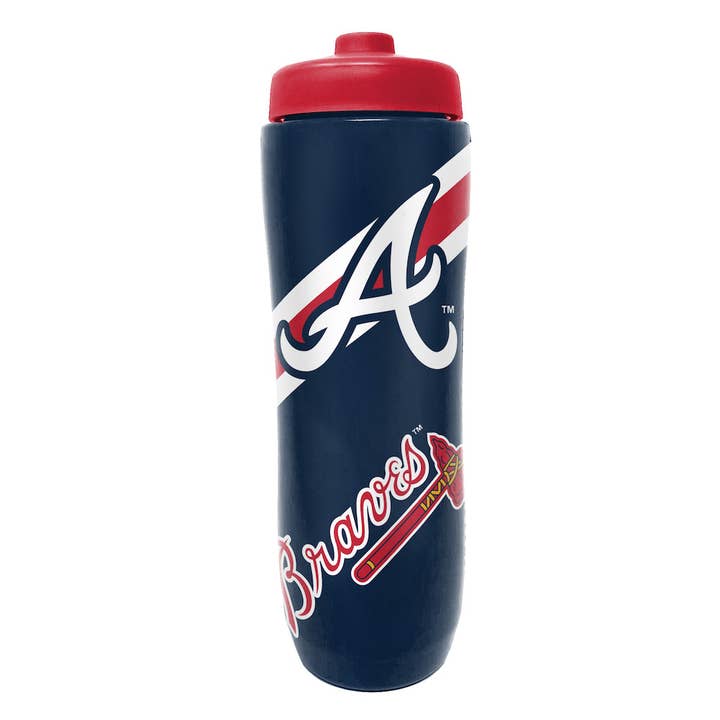 Quench your thirst with this squeezable water bottle featuring colorful team logos and wordmarks. Holds 32 ounces of your favorite icy cold beverage. Fast cap makes it easy to remove and refill, and pressurized spout reduces leaks.