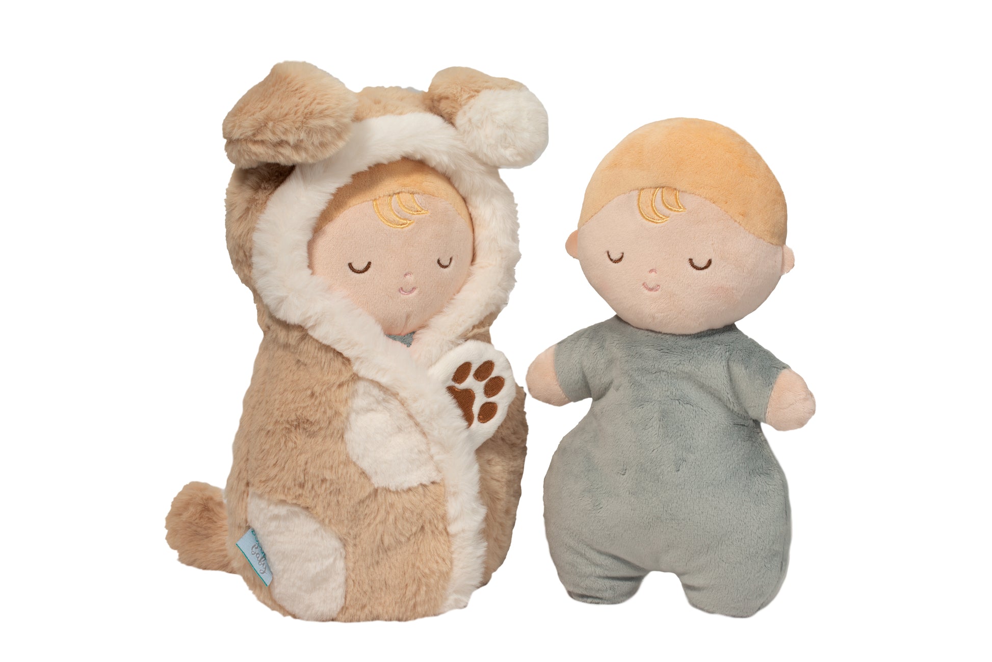 With a little bow wow and a shake of his puppy dog tail, our Baby Pup Hug is off on another dreamy adventure! Ideal for the littlest dog lovers, this playful reimagining of the typical soft doll includes a whimsical Puppy swaddle for wrapping up the cuddly Baby doll. Complete with perky ears and a tail, the swaddle also includes a closure with an embroidered paw print that will invite little hands to interact. It’s plush materials offer further temptation with their luxuriously soft textures. Whether its time to get cozy for a nap or launch into an imaginative session of play, our Baby Pup Hug will inspire hours of snuggly soft fun!