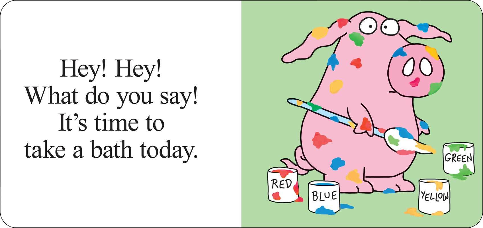 From the one and only Sandra Boynton, it’s bath time for pig in this waterproof storybook that features a squeak-able snout finale! It’s a classic tale of pig meets paint. Spattered with colors from a long day at the easel, pig takes to the tub, washcloth in hoof, determined to get all pink and clean. On the last page of this bath book, readers can push on the snout to make a squeaky squeal. Get it? Squeaky clean! Hey! Hey! What do you say! It’s time to take a bath today.