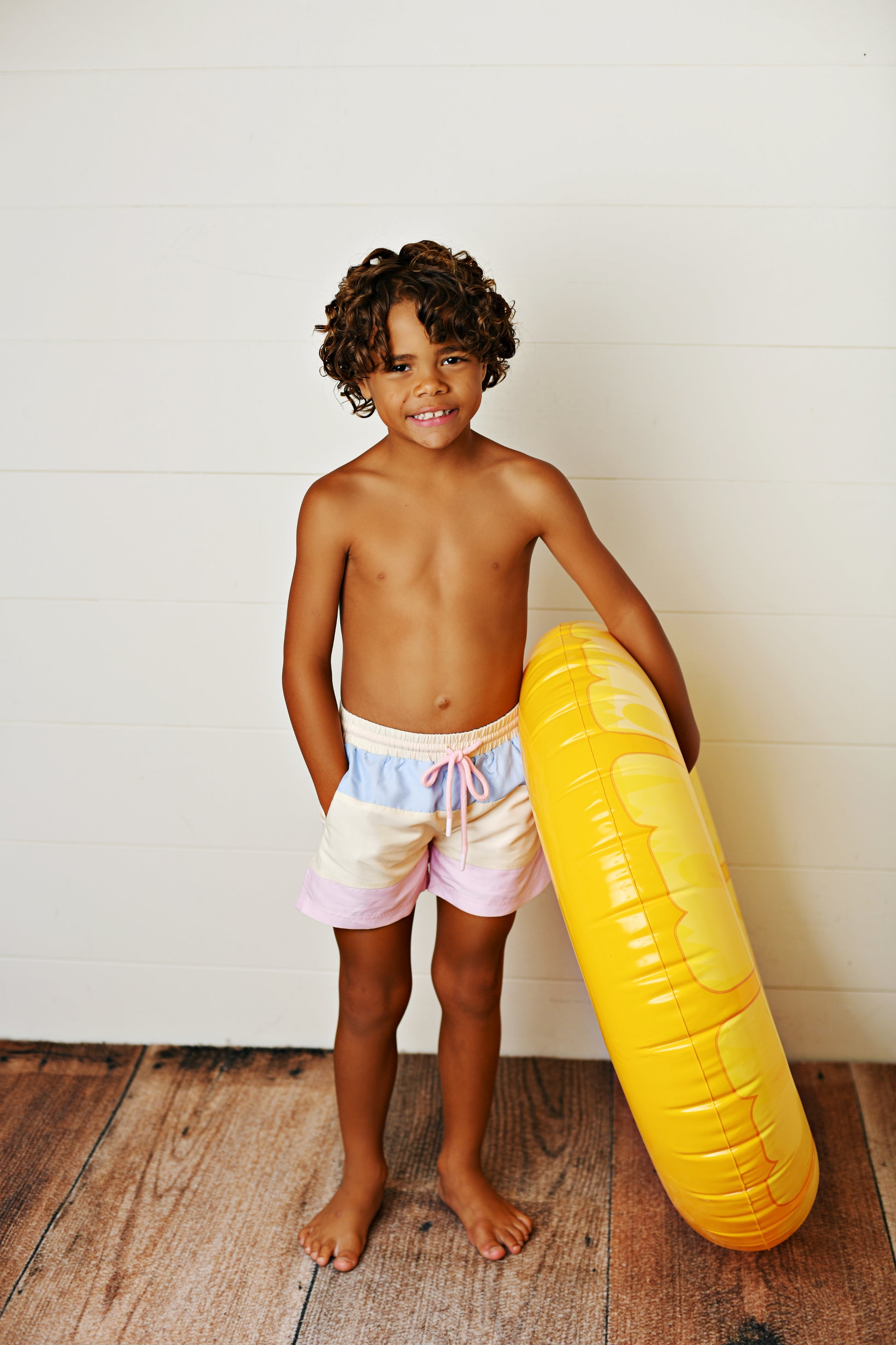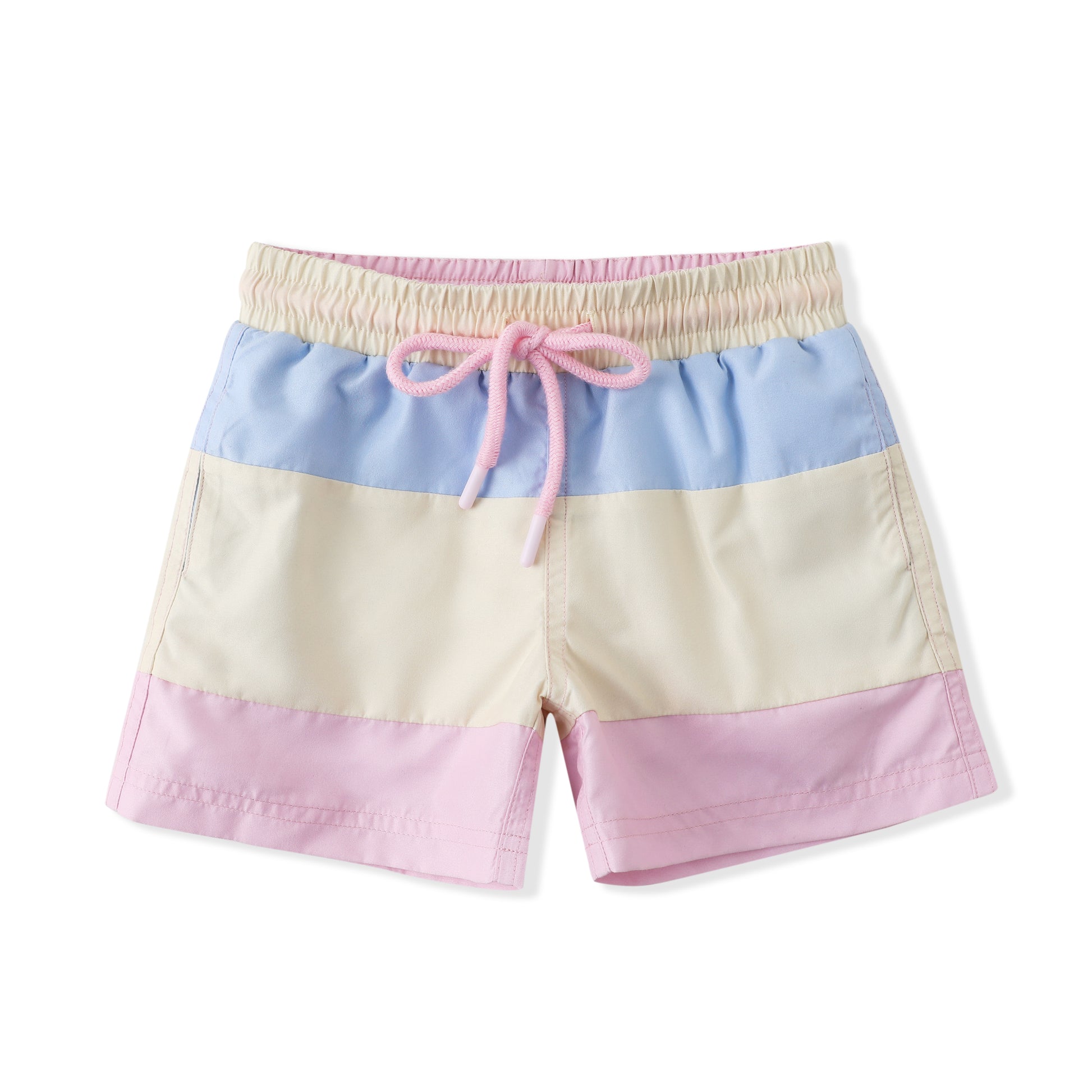 Classic with a twist—these pastel colorblock swim trunks are a stylish staple for every beach trip. Soft yet durable, with a functional drawstring waist and UPF 50 protection.