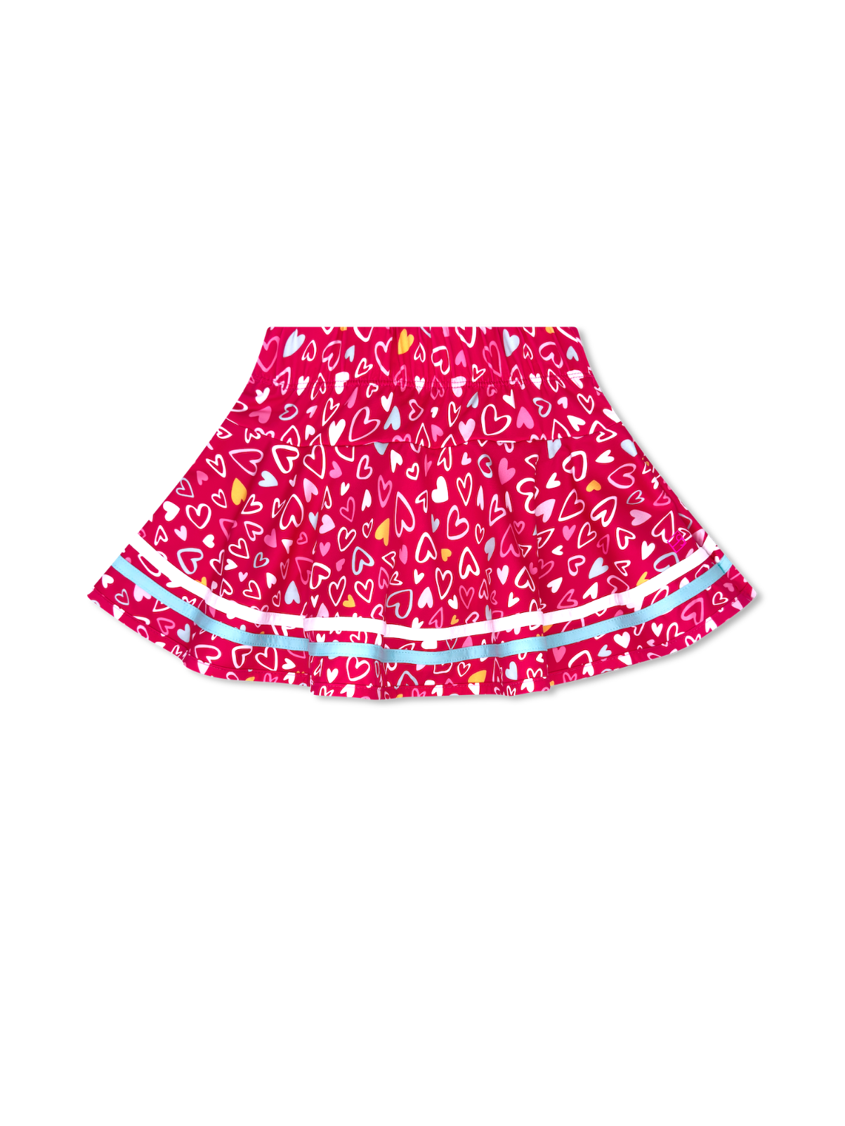 Full of energy and charm, the Callie Skort in Pinky Promise features a vibrant heart print and sporty stripe detail for a playful, athletic look. Built-in shorts make it easy to move from the court to the playground in comfort and style.