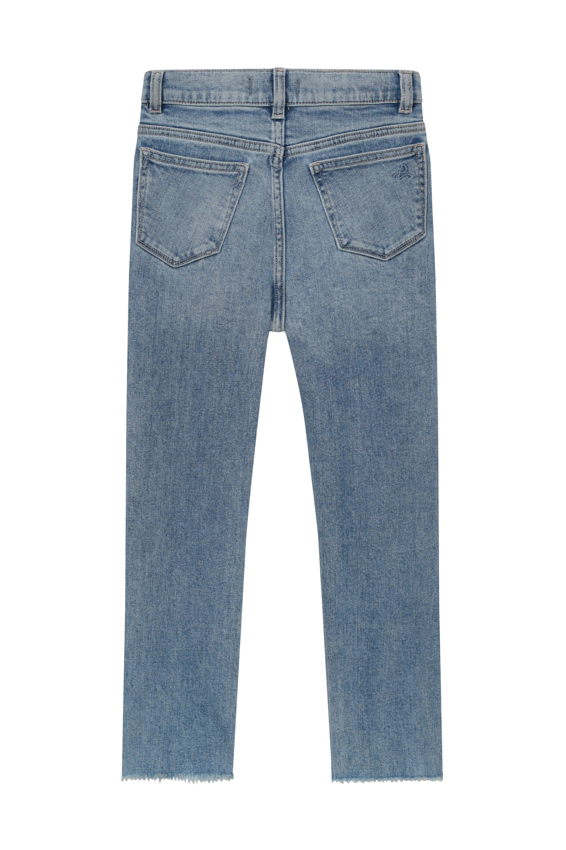 Sleek and versatile, the Emie High Rise Straight in Glacier offers a modern fit with clean lines. The light wash and raw hem give these jeans a trend-forward edge, making them an instant favorite for everyday outfits.