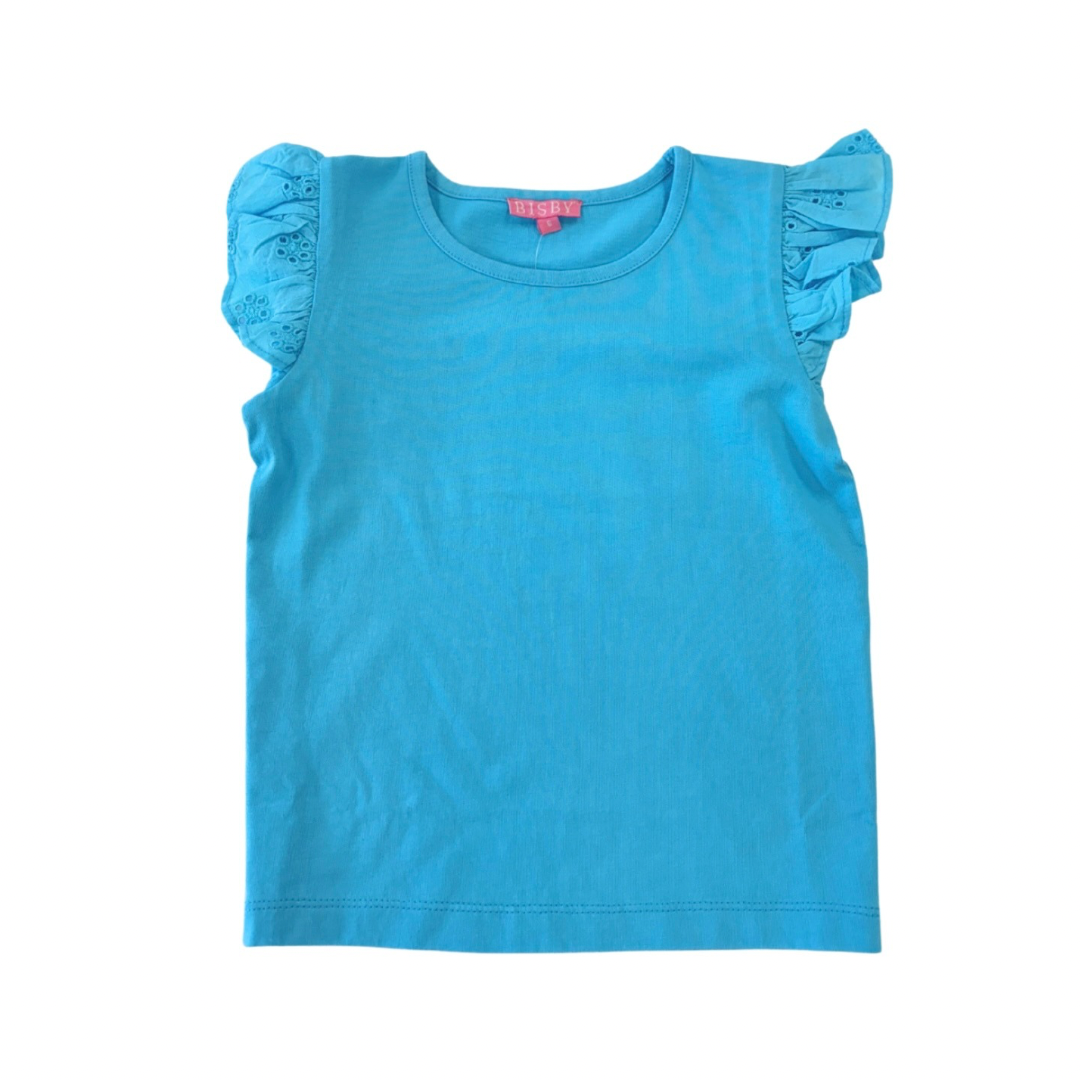 This aqua Eyelet Tank features soft knit fabric and sweet eyelet angel sleeves, perfect for girls looking for a feminine touch. Mix and match with skirts for a versatile and stylish outfit.