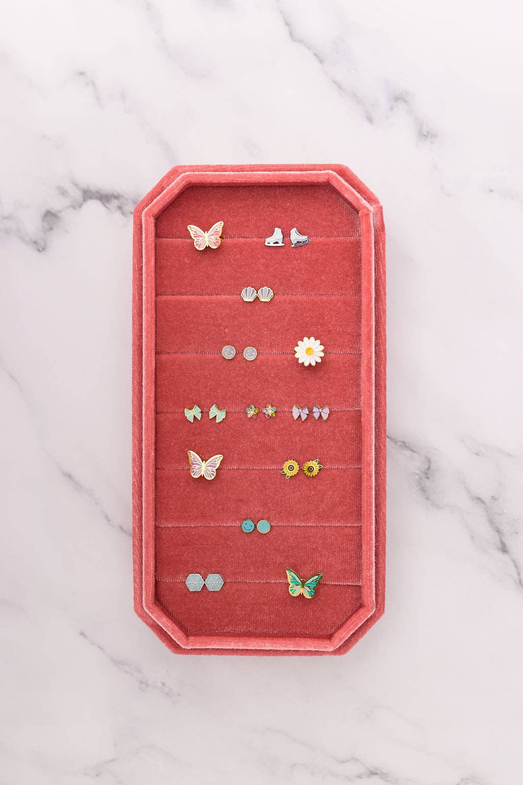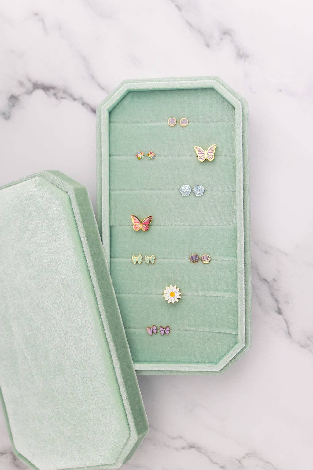 Keep up to 20 rings and 30 pairs of earrings safe and sound in our unique gemstone velvet jewelry box. Crafted from ultra-smooth velvet in a sleek and portable design, it's an essential for either home or any girl on-the-go!
