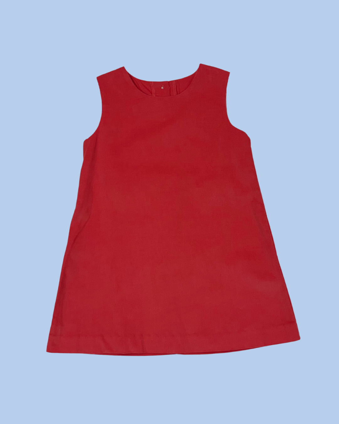 A true fall favorite, this cord jumper in flamingo pink is perfect for layering with blouses or turtlenecks.
