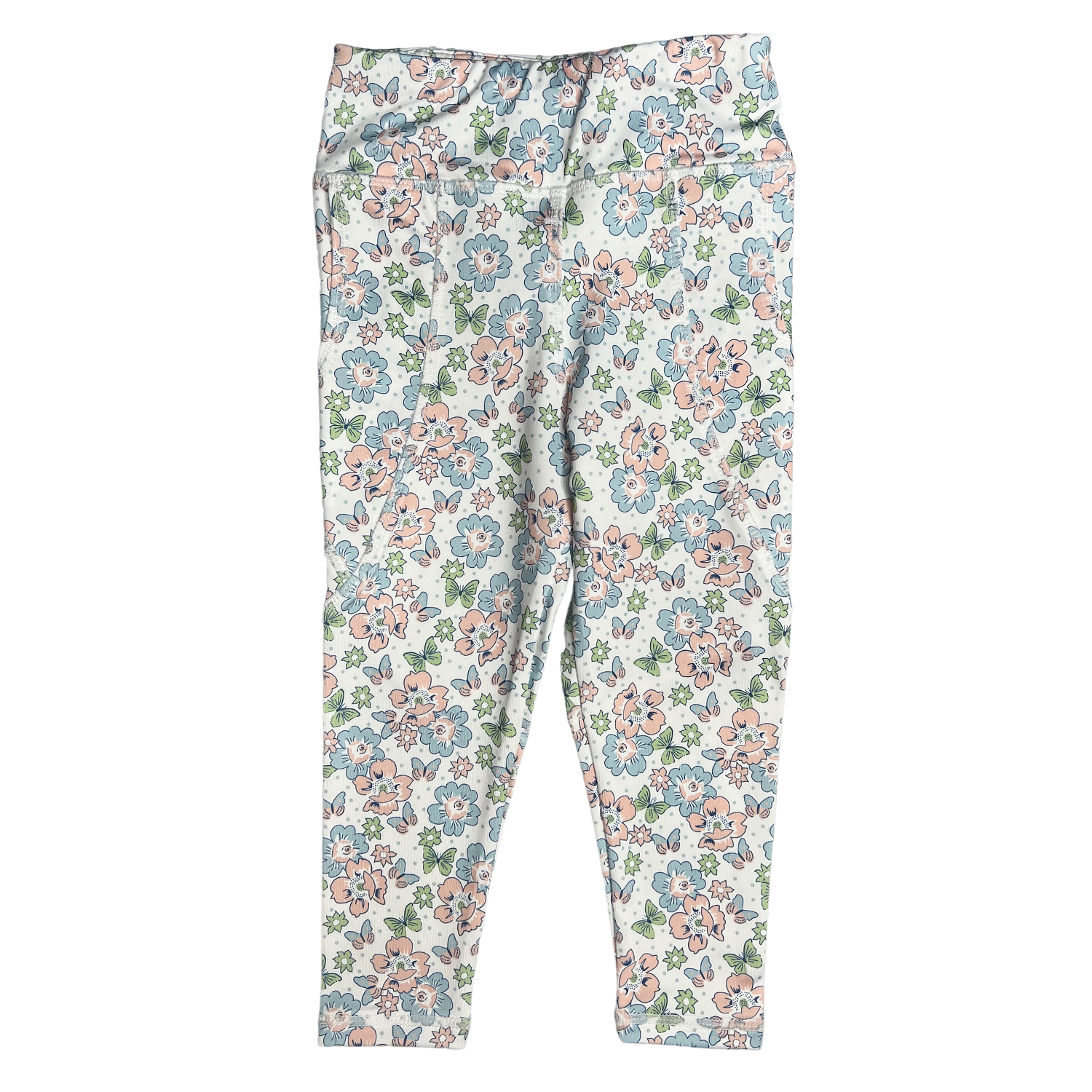 These leggings bring a fun twist with a butterfly and floral print. Lightweight and stretchy for all-day play.