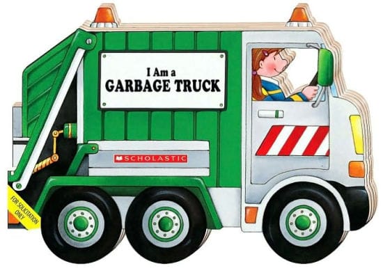 I am a garbage truckI carry trash to the dump.Readers may want to put on their gloves for this fun and sturdy board book shaped like a garbage truck! Read along as garbage trucks of all sizes travel door to door picking up sticky, icky trash to deliver to the dump!Little explorers will love seeing these big machines in action.