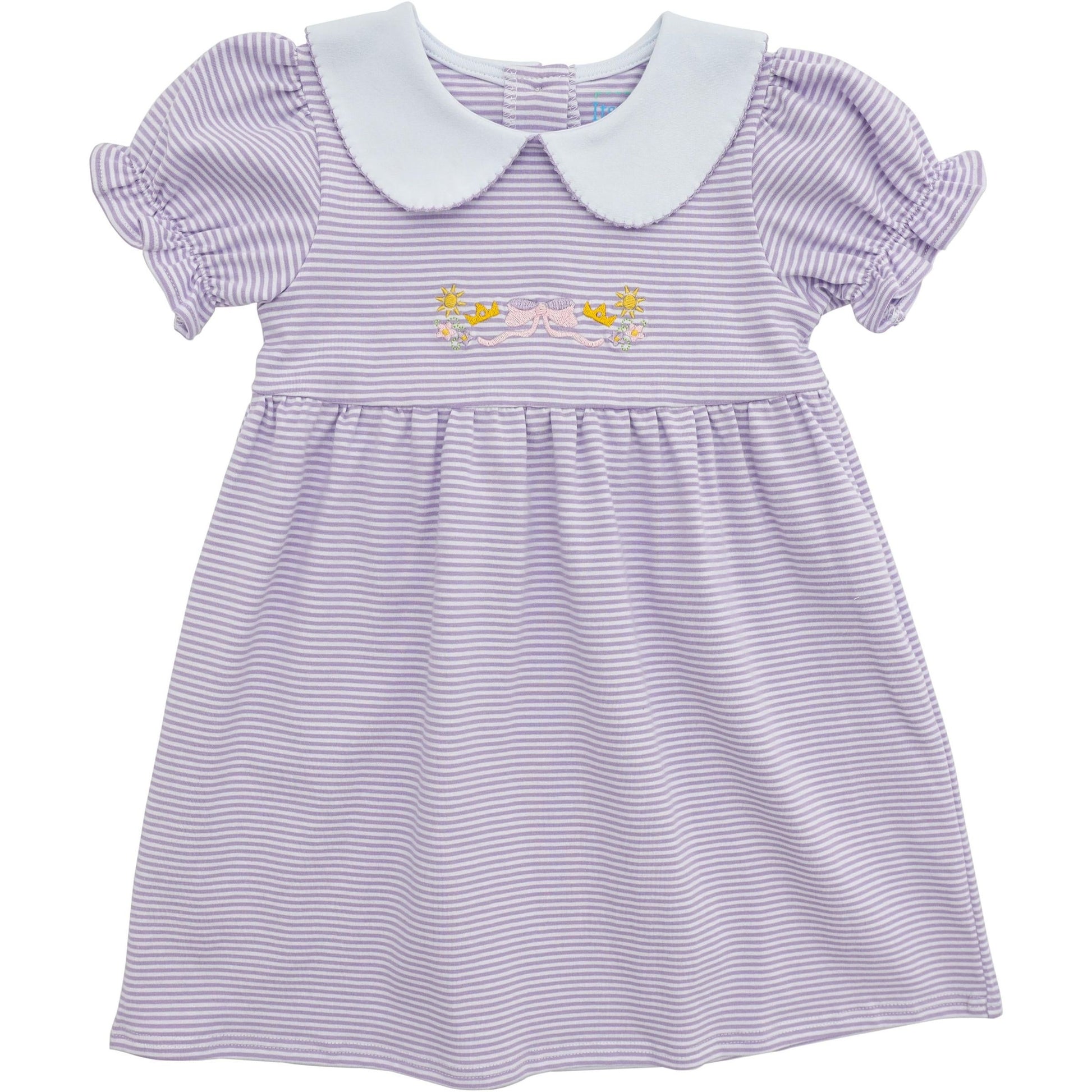 An easy, twirl-friendly dress with a polished feel—soft knit comfort with a sweet embroidered touch.