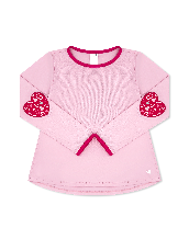 The Kylie T Long Sleeve brings cozy confidence to cooler days with its soft pink hue and heart-print elbow patches. Lightweight and breathable, it’s perfect for layering over activewear or wearing solo with her favorite skort.