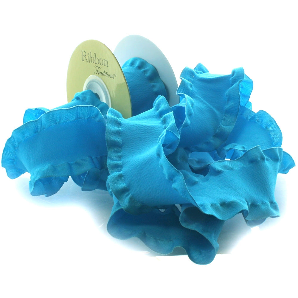 Double ruffle satin ribbon. Available in 7/8" and 1".