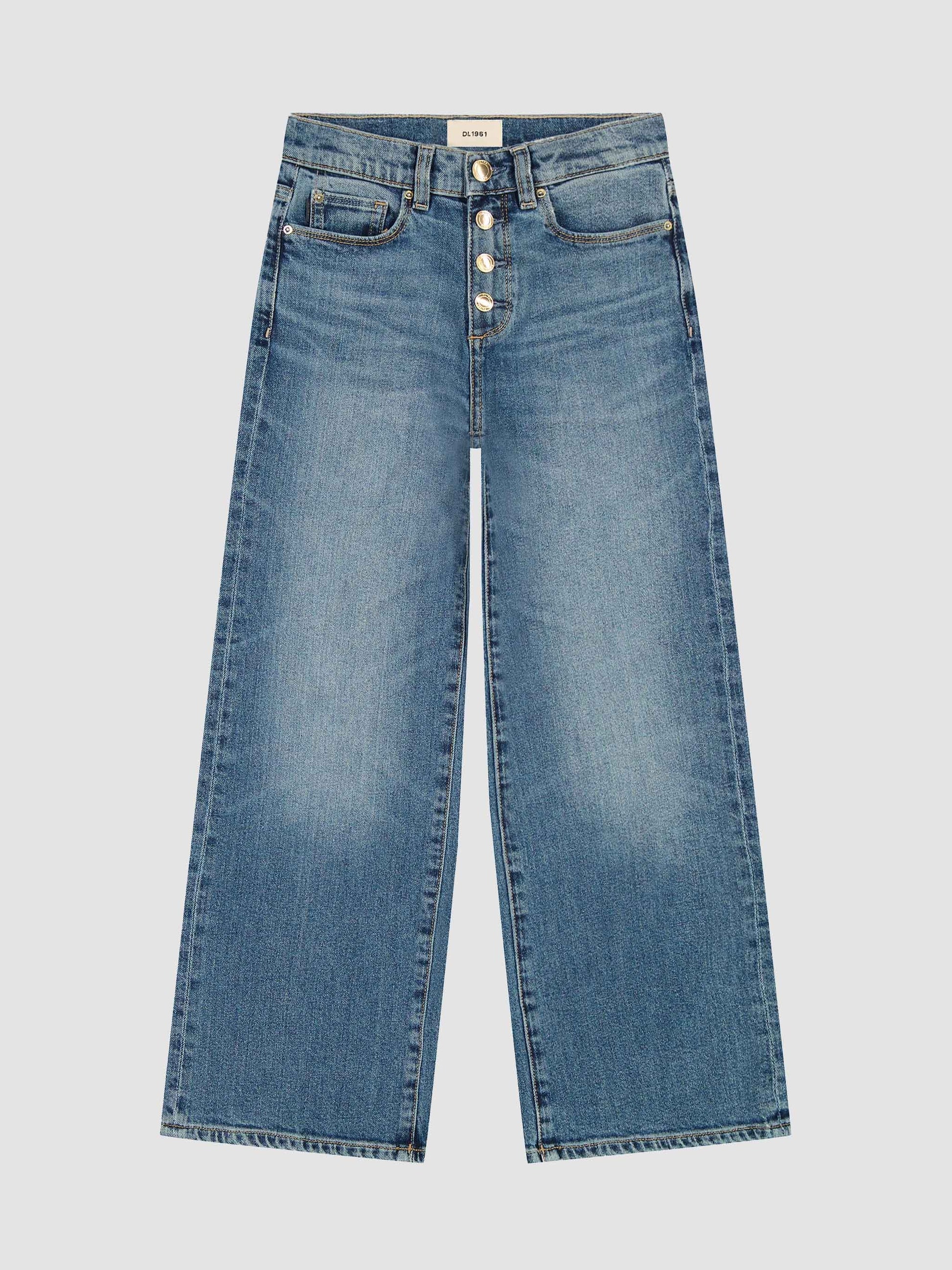 The Lily Wide Leg in Lakewood wash brings a cool, modern shape to everyday denim. With its button-front detail, wide-leg cut, and versatile medium-blue wash, these jeans make a statement while staying endlessly wearable.