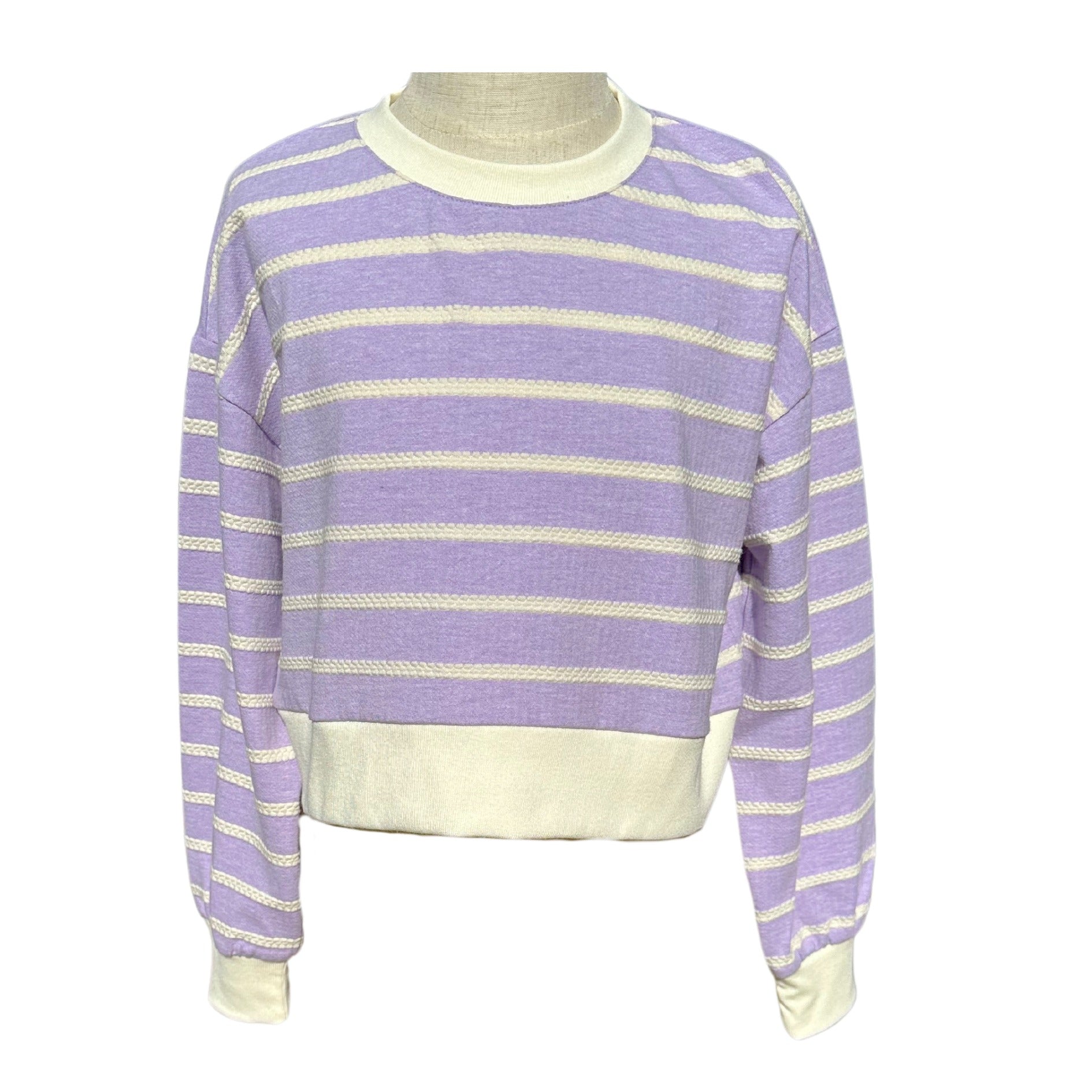 The Natalie Top in Lavender Stripe brings a playful pop of color to your casual lineup. Its soft lavender and cream stripes, contrast trim, and relaxed silhouette make it an instant favorite for lounging or weekend wear.