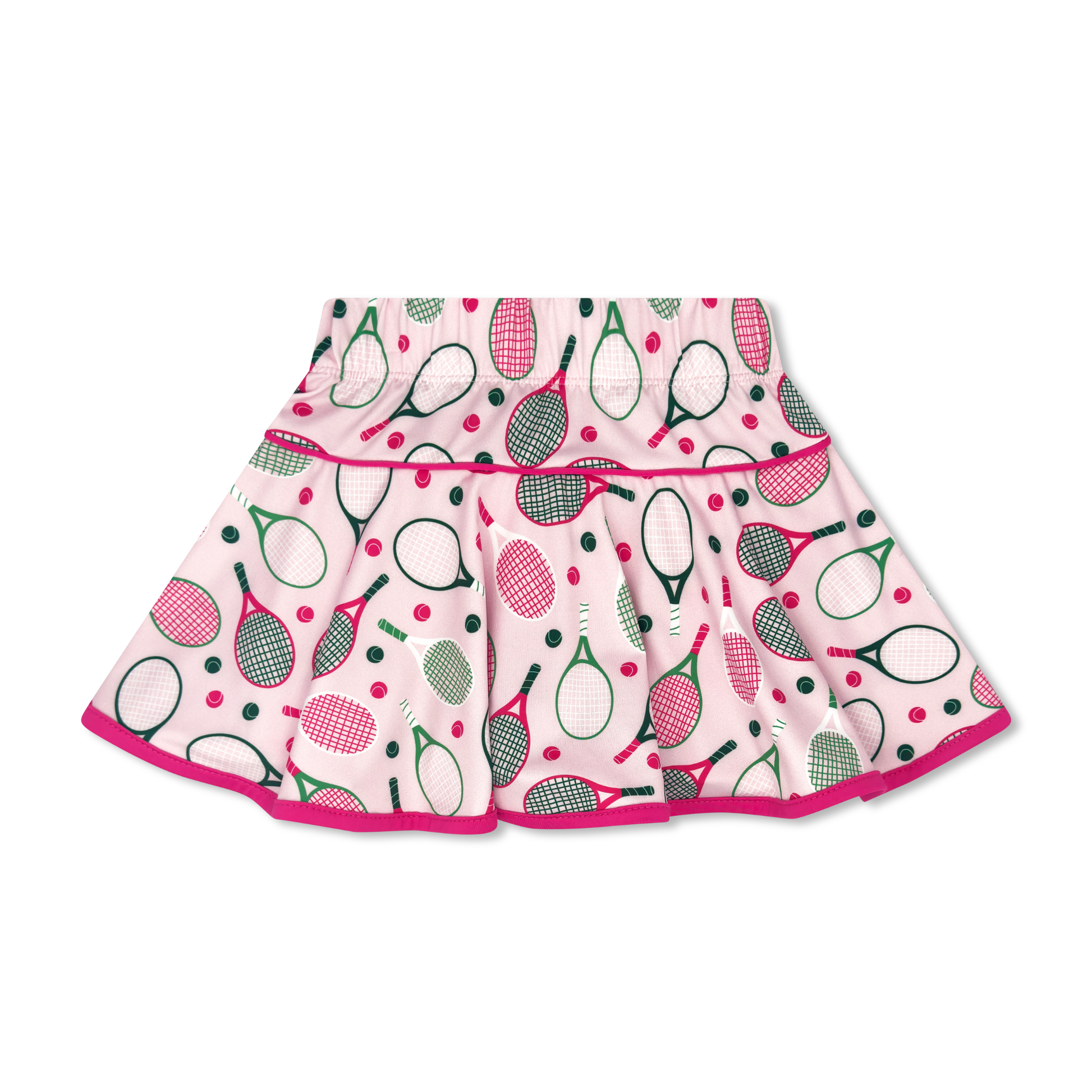 Game, set, style! The Quinn Skort – Let’s Play, Power Pink is made for girls who bring energy and flair to the court. Featuring an allover tennis racket and ball print in bold pinks and greens, this playful skort is finished with a bright Power Pink hem for a sporty-chic look. With built-in shorts and a comfy elastic waistband, it’s perfect for serving up style from match day to play day.