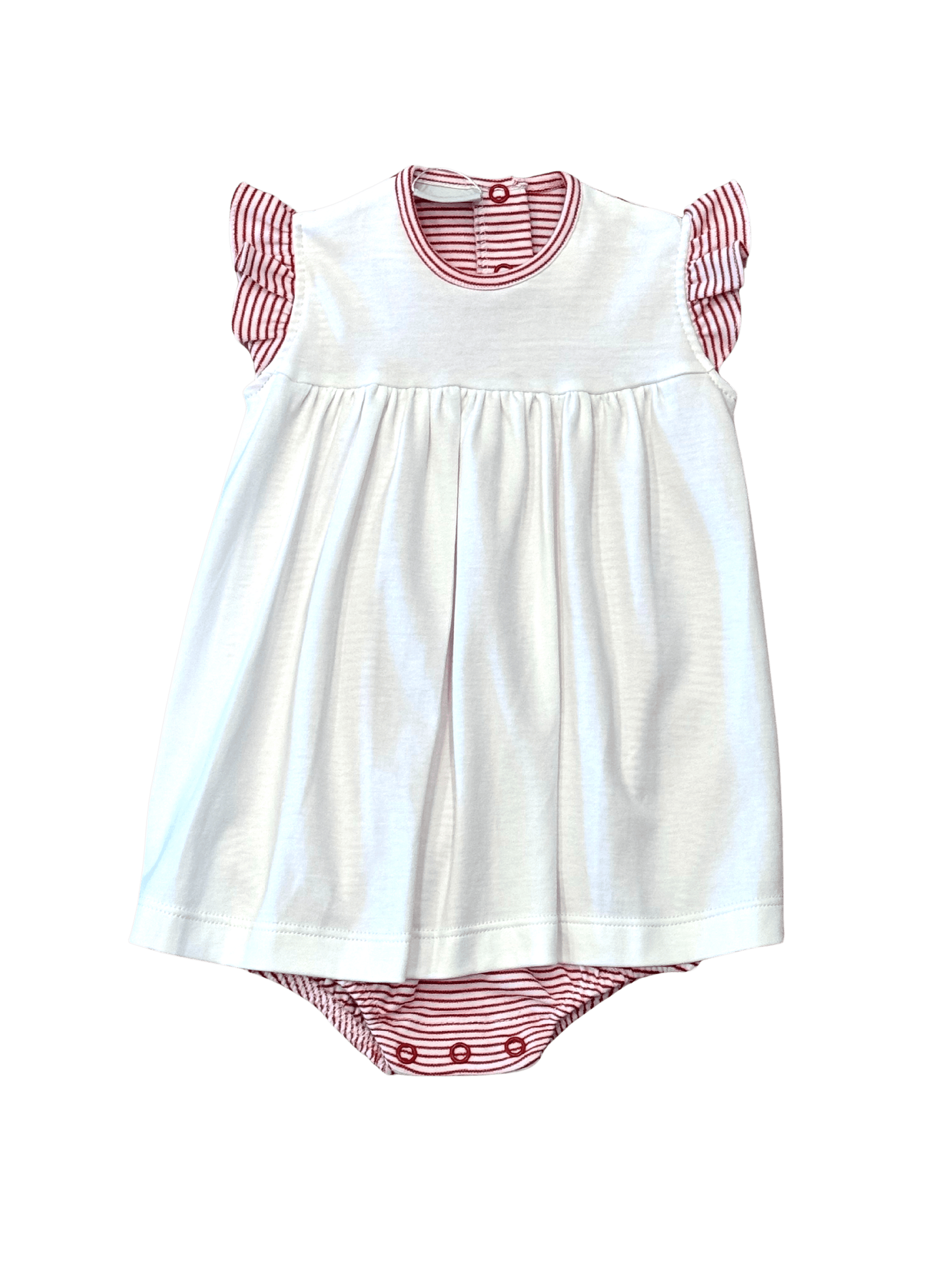 This adorable Pima Cotton baby bubble by Squiggles features a classic red and white stripe design with a charming apron front detail. Made from soft, breathable Pima Cotton, this bubble ensures all-day comfort for your little one. The apron front adds a timeless, playful touch, making it perfect for festive occasions or everyday wear. Snap closures provide easy diaper changes, and the high-quality fabric ensures durability and softness with every wash. A sweet and stylish choice for any baby!