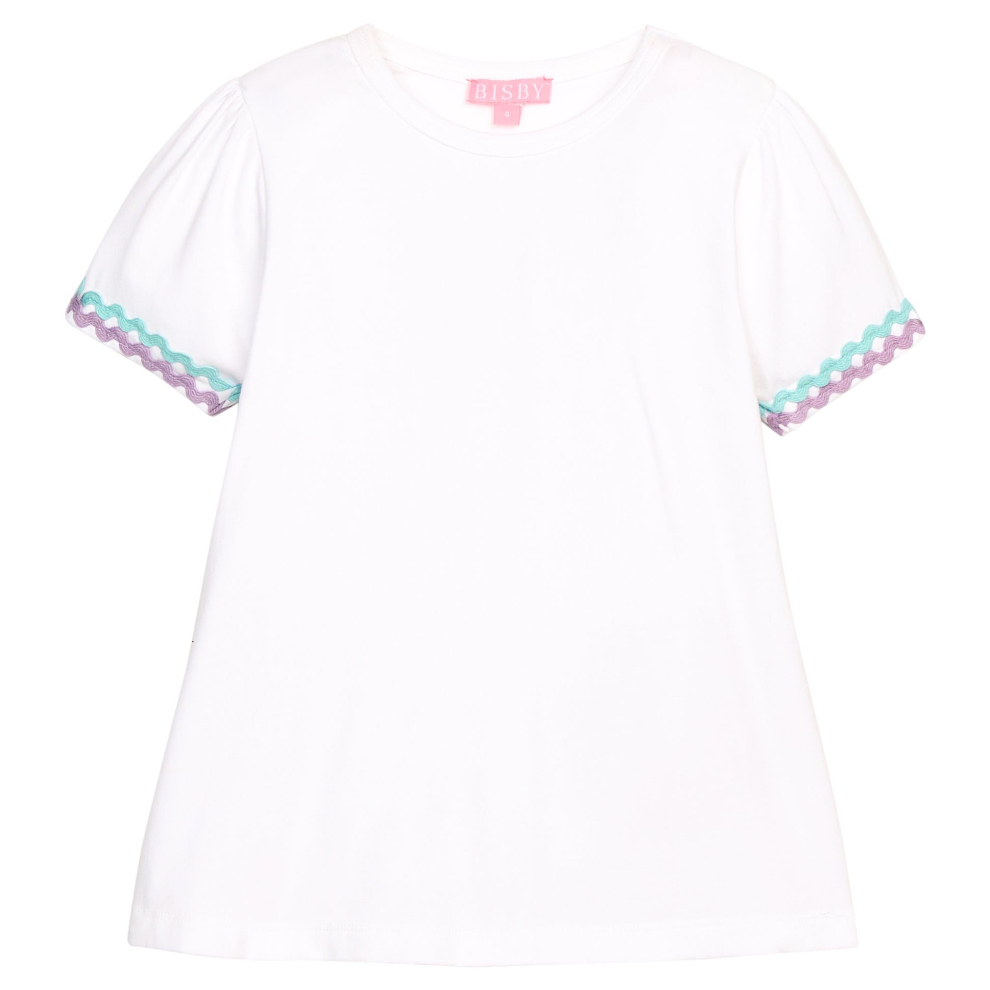 An everyday tee with a Bisby twist—easy to wear, easy to love, and perfect for mixing into her spring rotation. Colorway: Aqua & Lavender.