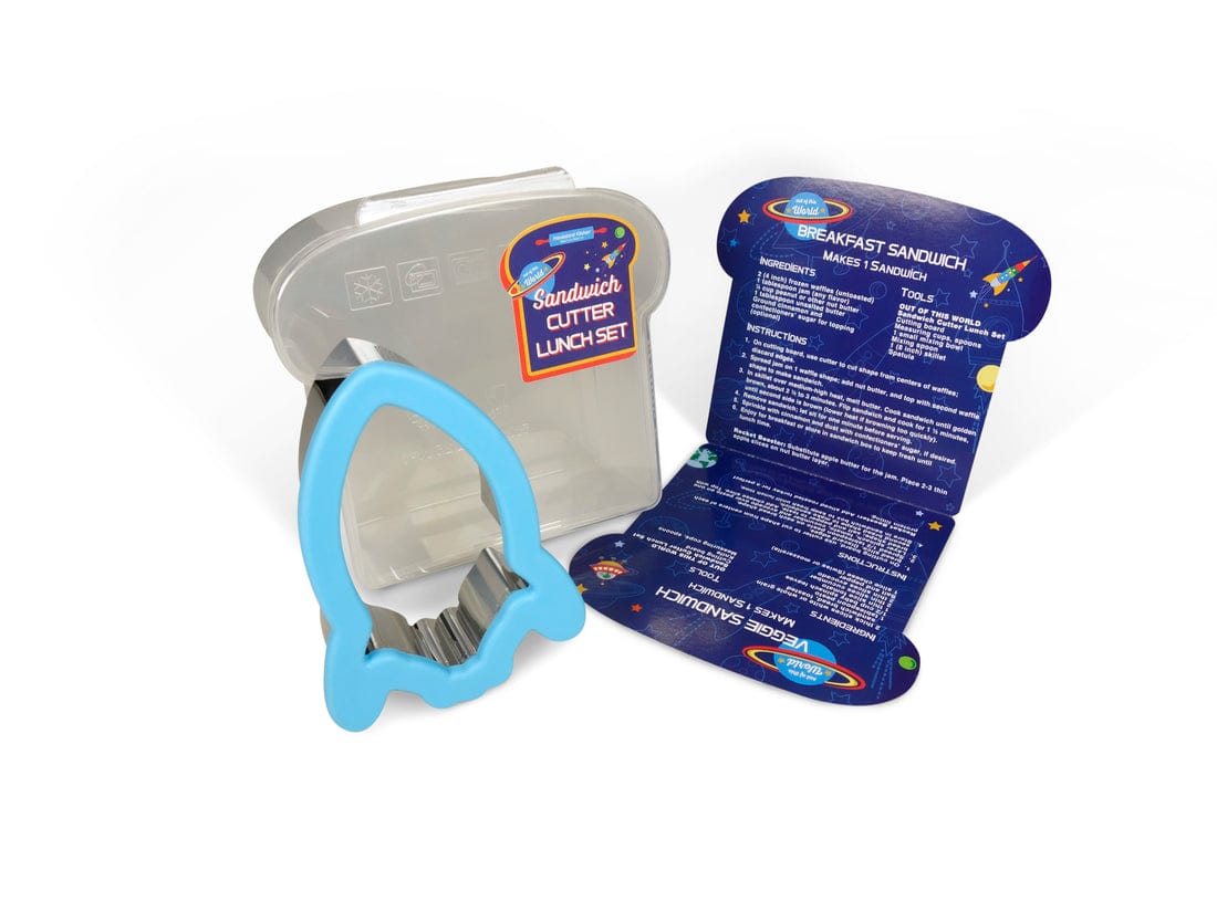 Includes: 1 rocket stainless steel sandwich cutter, 1 sandwich box and recipes.