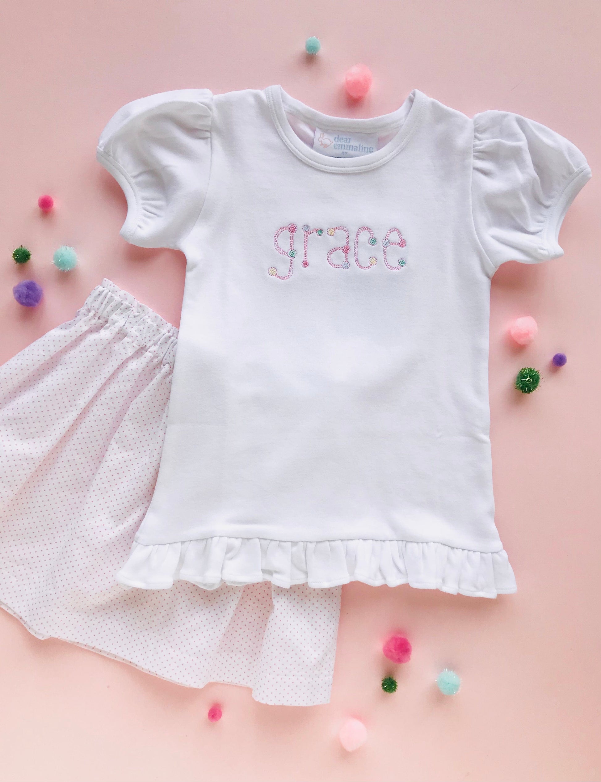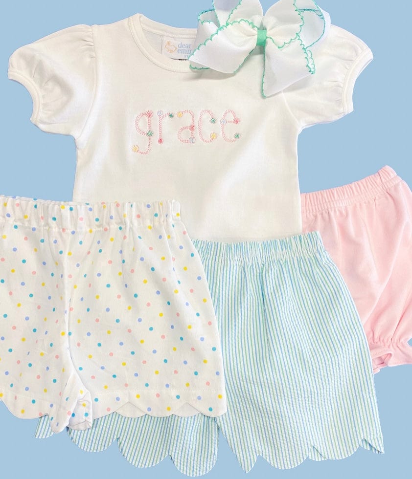 Shown here with Confetti Dot Scallop Shorts. Click here to purchase.