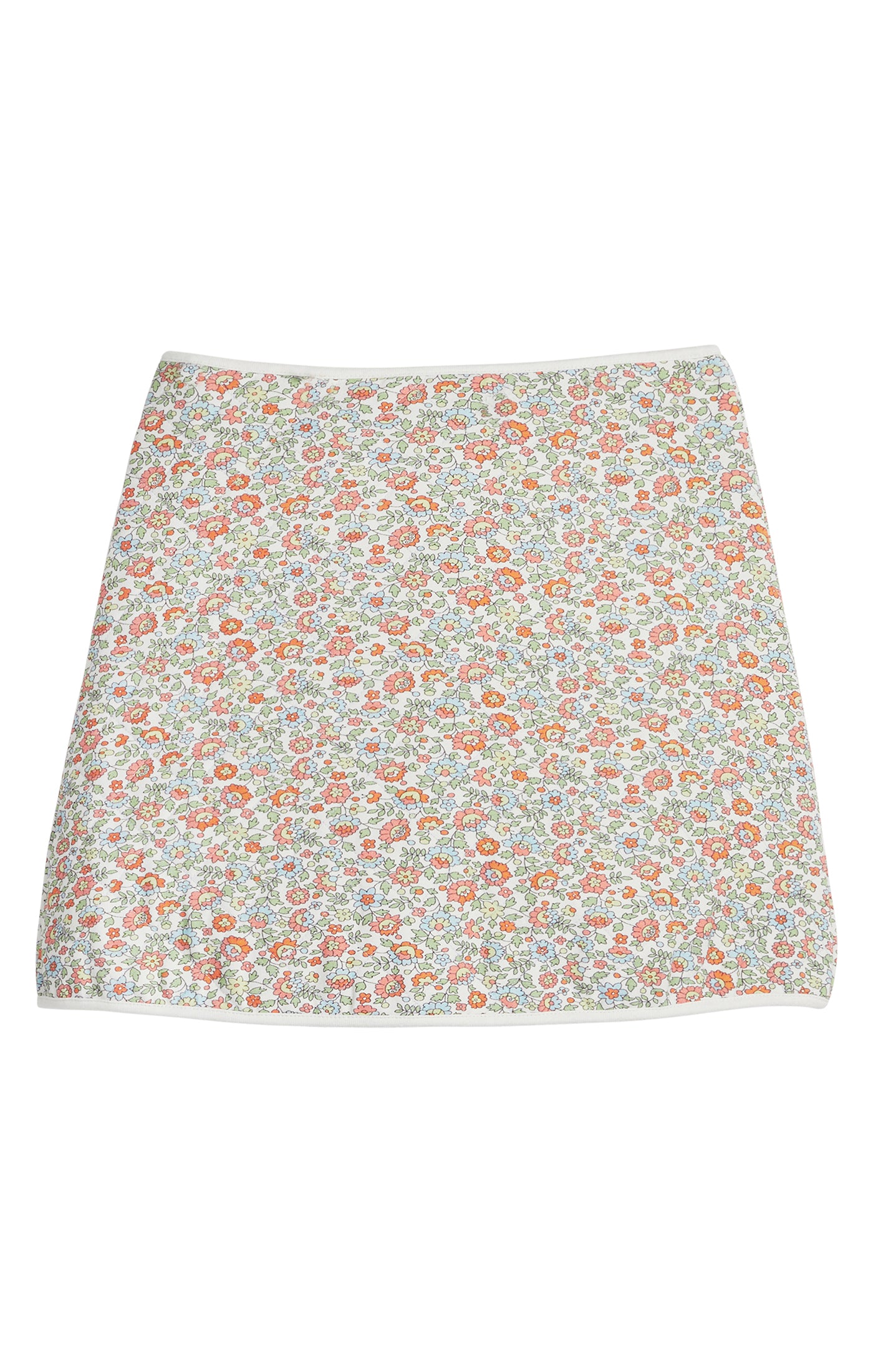 Charming and classic, this quilted skirt in floral is a staple for cooler days. It’s fully lined with a soft elastic waistband for comfort and pairs beautifully with the matching jacket or a ribbed turtleneck for a pulled-together school day look.