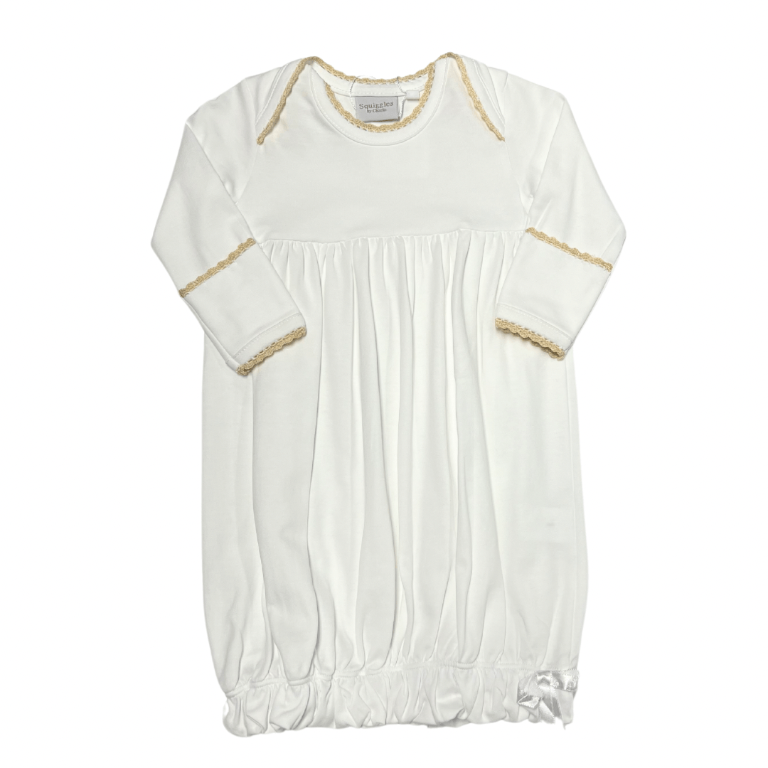 White Lap Shoulder Gown with Latte Crochet Trim