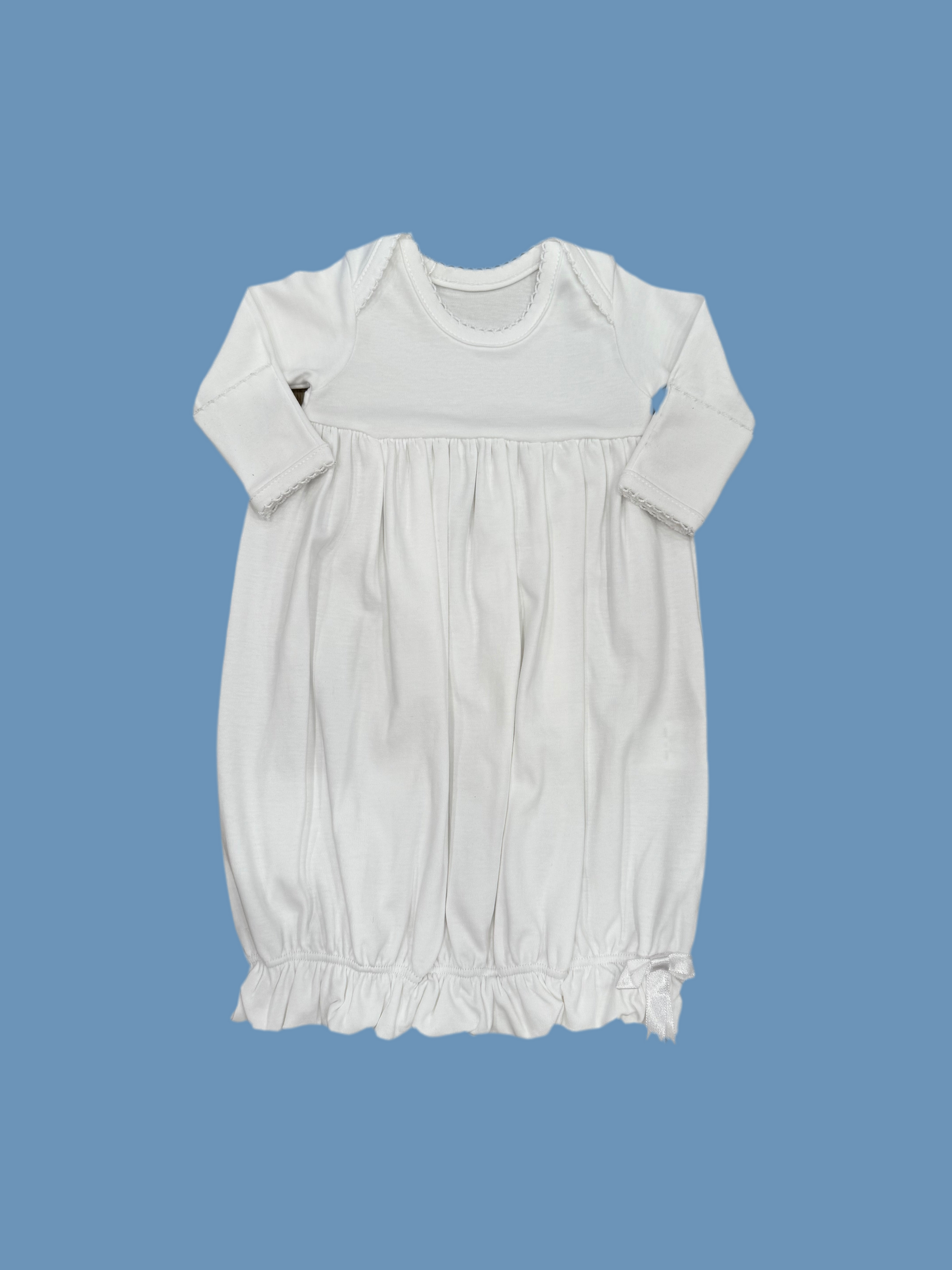 White Lap Shoulder Gown with White Picot Trim